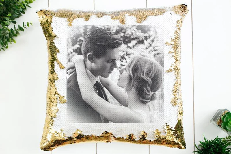 כרית נוי מרובעת בגודל 40*40 ס”מ עם פייטים מתחלפים להדפסה אישית שתבחרו.